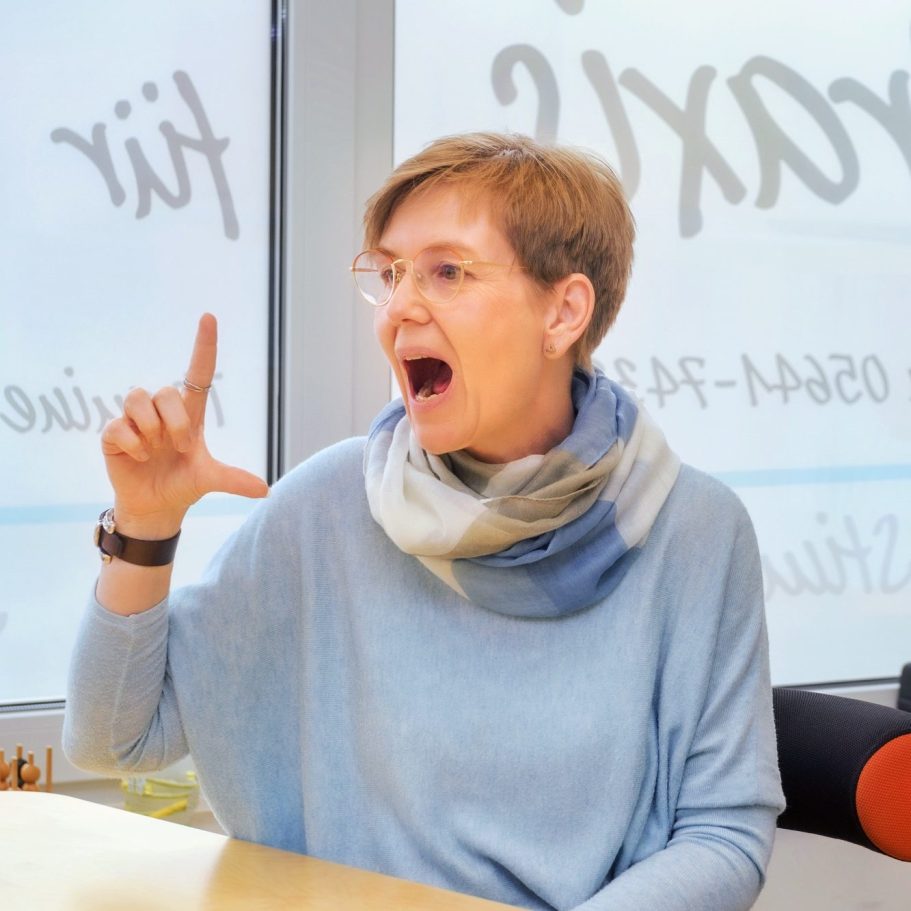 Eine nonverbale Kommunikation meint mit Mimik und Gestik zu arbeiten oder gegebenenfalls über eine Schreibtafel oder einem Papier mit Stift zu kommunizieren.